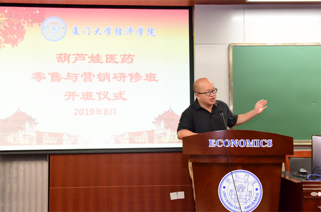 在开班仪式上,廖景峰主任首先代表厦门大学经济学院热烈欢迎bc贷官网医药零售与营销研修班的学员到厦大学习,并就厦门大学及经济学院的相关情况进行了介绍。他说,bc贷官网学员走进厦大就是厦大的校友,希望未来的日子能够关心、支持母校的发展,多提宝贵意见,同时他也祝大家在厦大学习期间学有所成、学有所获。