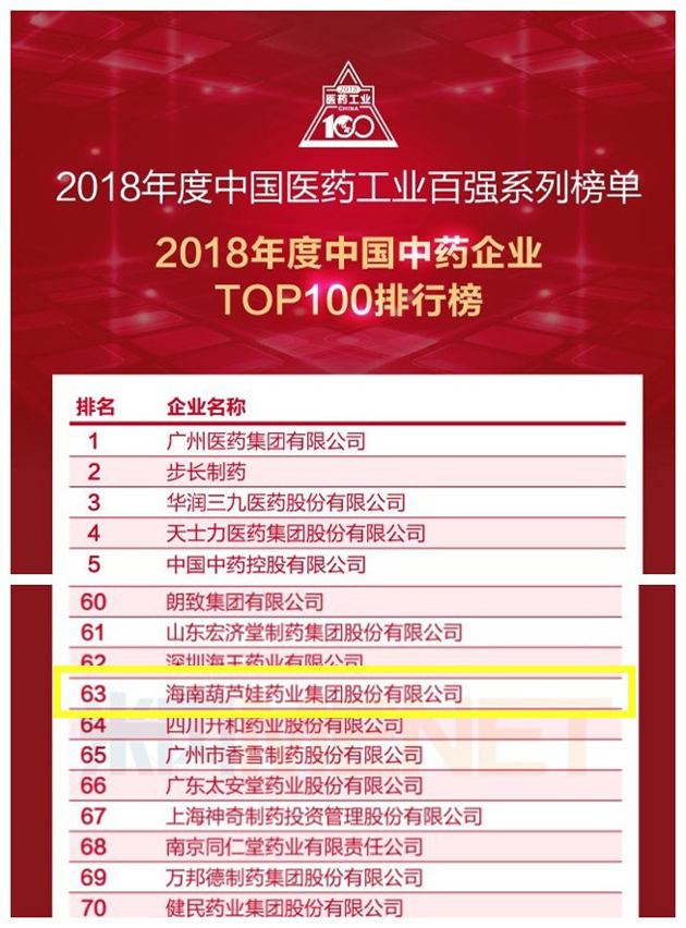 “中国医药工业百强排行榜”依托米内网在中国独家开发运行多年的三大终端六大市场终端格局数据库,针对医药工业企业,从两大最重要的维度(创新驱动力和专业推广力)出发,评选出了“2018年度中国医药工业百强系列榜单”。bc贷官网药业集团凭借扎实的研发生产实力和稳健的市场推广能力,经过多轮海选,并经专家委员会审定,成功入选“2018年度中国医药工业百强系列榜单”子榜单“2018年度中国中药企业TOP100排行榜”。